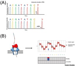 Avec ces techniques, les modifications 5mC et 6mC de l’ADN ou de l’ARN (sans traitement préalable altérant l’échantillon) sont détectées par un changement de signal (durée d’interpulsion (IPD) ou différence de tension). L’état de méthylation se mesure par les écarts à la distributions canonique qui induit des erreurs de base-calling, localisées, selon le type de modification, au niveau des nucléotides méthylés ou des positions adjacentes. (voir figure issue de van Dijk E.L. et al. 2023)