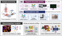 En RNA-seq cellule unique, les chercheurs dissocient les cellules du tissu pour, par exemple, distinguer les types de cellules sur la base de l’expression génique. Maintenant, avec les méthodes de transcriptomique résolues spatialement, les scientifiques peuvent obtenir des données transcriptomiques et connaître le contexte positionnel de ces cellules dans un tissu [1].