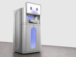 Les DNB (nanobilles d’ADN) sont pompées par le système fluidique et chargés sur une puce gravée de motifs.