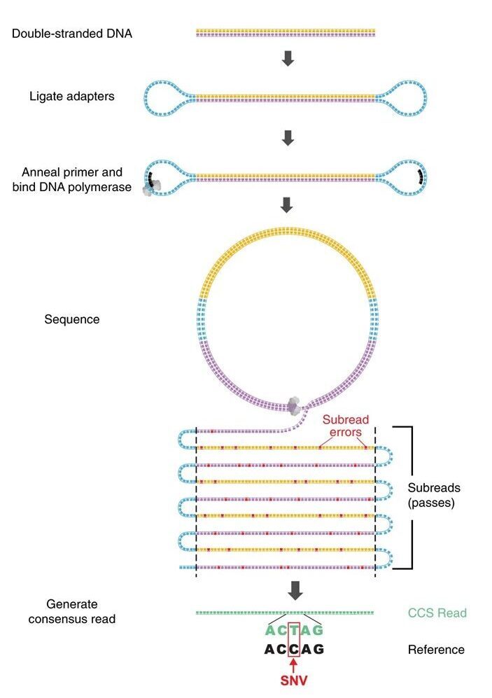 Based on SMRT technology (single molecule real time technology), RSII and Sequel sequencing enables producing very long readings to solve the coverage of low complexity regions and determine structural variants and haplotypes.